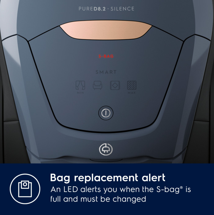 Takoj po vklopu naprave se prižge bela indikatorska lučka S-bag, čeprav je vrečka nova in čista.