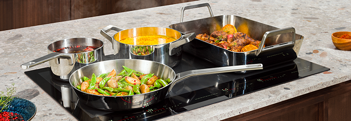 Indukcijska kuhalna plošča Electrolux TotalFlex samodejno zazna kuhinjsko posodo različnih oblik in velikosti ter zanje ustvari namensko kuhališče.
